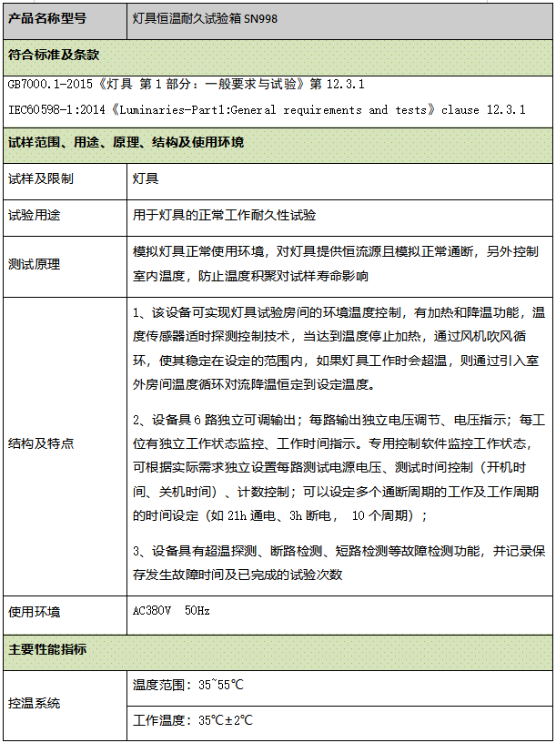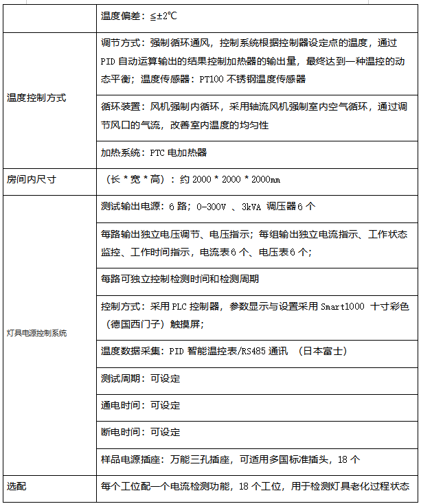用于灯具的正常工作耐久性试验模拟灯具正常使用环境,对灯具提供恒流源且模拟正常通断,另外控制室内温度,防止温度积聚对试样寿命影响