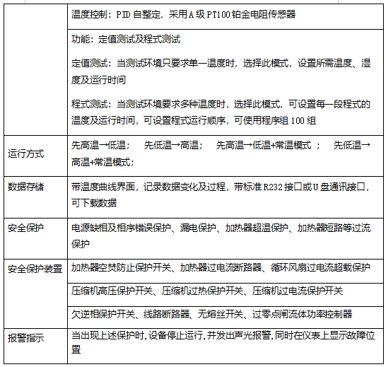 采用加热及制冷系统实现箱体内的环境温度的控制及变化,模拟产品所需环境温度及交变程序